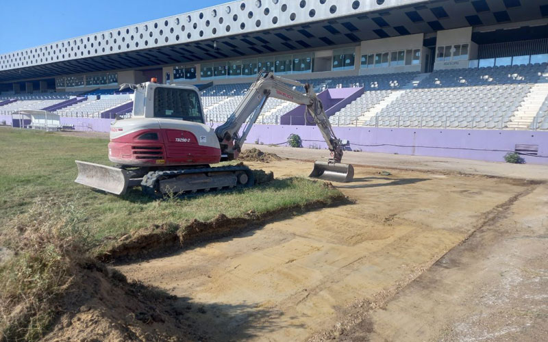 Ya están las maquinas levantando el césped del nuevo estadio de la victoria.